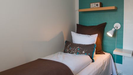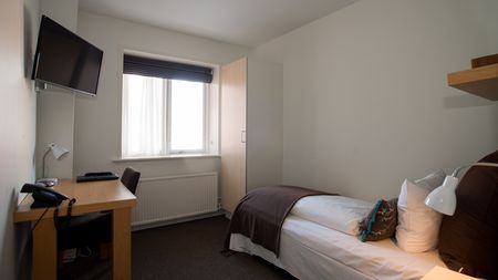 Standard værelset har eget badeværelse med bruseniche spejl, eludtag, stang og kroge til håndklæde og tøj samt hårtørrer. Værelset har garderobeskab, skrivebord, telefon, og Tv.